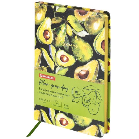 Ежедневник BRAUBERG VISTA "Avocado" предназначен для людей, которые ценят время и стараются каждый день проживать с максимальной пользой.Внутренний блок включает 136 листов тонированной бумаги цвета "слоновая кость" плотностью 70 г/м2. Благодаря стандартному формату А5 ежедневник удобно использовать как в офисе, так и на выездных деловых встречах. Твердая (книжная) обложка с полноцветной печатью и тиснением золотой фольгой делает ежедневник неповторимым и запоминающимся.Срез ежедневника фольгирован золотой фольгой, что придает ему особый шарм. Дополнением является закладка-ляссе, с помощью которой можно быстро открыть ежедневник на нужной странице. Помимо прочего ежедневник снабжен справочным материалом. В конце ежедневника есть 3 страницы для записей и заметок.