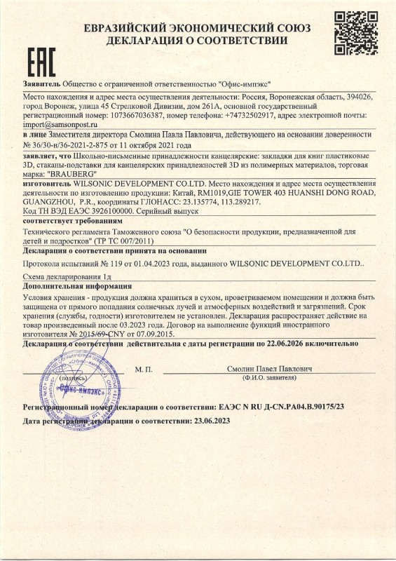 Детали | Декларация о соответствии ЕАЭС N RU Д-RU.РА05.В.31426/23 |