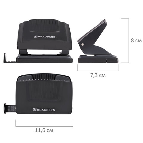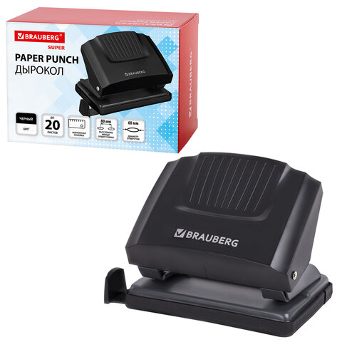 Дырокол для бумаг – это незаменимый офисный инструмент, предназначенный для аккуратного пробивания отверстий в бумаге, что позволяет затем легко подшивать документы в папку. Этот аксессуар используется для перфорации бумаги.Дырокол эргономичного дизайна с качественными пробойниками обеспечивает легкое и точное пробивание бумаги.Дырокол BRAUBERG "SUPER" способен пробить до 20 листов бумаги за один раз. Он выполняет стандартную перфорацию – 2 отверстия диаметром 6 мм каждое. Расстояние между отверстиями – 8 см, поэтому перфорированные дыроколом листы могут храниться в папке идеально ровно и не сминаться. После завершения отчетного периода они обычно снимаются с металлических колец и сшиваются ниткой. Метка центрирования поможет ровно разместить листы.Ограничительная линейка позволяет точно пробивать отверстия в нужном месте, что делает возможным сложить документы в папку ровной стопкой. Текстурная поверхность предотвращает скольжение рук во время работы. Контейнер для конфетти предназначен для сбора мусора, что помогает поддерживать рабочее пространство в чистоте.Компактные размеры этого делового аксессуара позволяют легко разместить его на рабочем столе, а классический черный цвет гармонично впишется в любой интерьер.