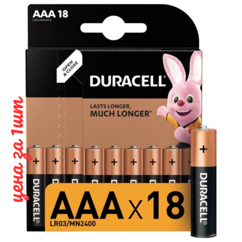 Батарейки КОМПЛЕКТ 18 шт., DURACELL Basic ОРИГИНАЛ, AAA (LR03, 24А), алкалиновые, мизинчиковые, 81483686, Бельгия