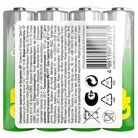 Алкалиновые батарейки GP размера AA увеличенной продолжительности работы идеально подходят для приборов с высоким потреблением энергии, таких как механизированные игрушки, фонарики, портативные игровые консоли, пульты дистанционного управления.Батарейки GP – это надежные элементы питания, которые обеспечивают стабильную работу устройств. В процессе изготовления использовались качественные материалы и тщательно соблюдались стандарты безопасности; они оптимально подходит для бытового применения. Неиспользованные батарейки GP могут сохранять заряд до 10 лет при хранении в обычных условиях. С этими батарейками можете полностью положиться на свое устройство. Поставляются комплектом из 4 штук в пленке.