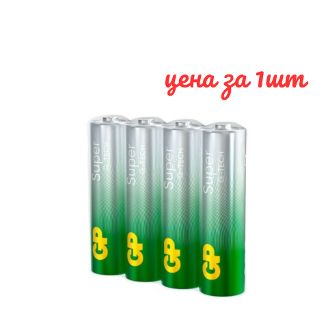 Батарейки КОМПЛЕКТ 4 шт., GP Super G-Tech, AAA (LR03, 24А), алкалиновые, мизинчиковые, в пленке, 24AR, 24ARS-2SB4, Китай