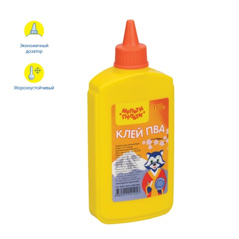 Клей ПВА "Мульти-Пульти" серии "Енот в Японии" белого цвета предназначен для склеивания бумаги, картона, дерева, стекла, кожи, ткани. Клей морозостойкий. Вес - 150 граммов. Упаковка в термоусадку по 10 штук. Выдерживает 5 циклов заморозки/разморозки при температуре до -40°С. Хранить при температуре выше +5°С. Удобная пластиковая упаковка с экономичным дозатором. Отлично подходит для создания поделок и работы на уроках труда. Для детей старше 3-х лет. Перед использованием взболтать.
