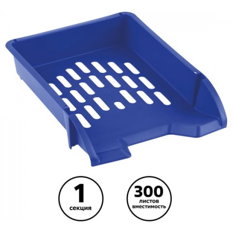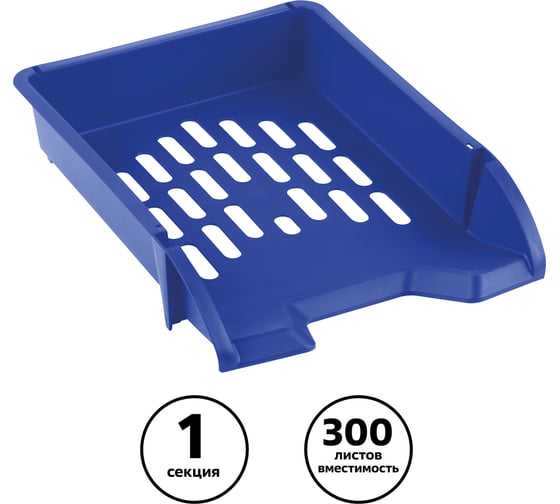 Лоток для бумаг горизонтальный "СТАММ" серии "Лидер" подходит для хранения и систематизации бумажной продукции формата А4. Прочный, вместительный корпус. Лоток имеет современный дизайн и сетчатую поверхность. Предусмотрена возможность установки одного лотка на другой. Изготовлен из качественного пластика. Изделие высотой 70 мм, глубиной 340мм и шириной 255мм вмещает до 300 листов. Индивидуальная упаковка - пакет. Цвет лотка - синий.