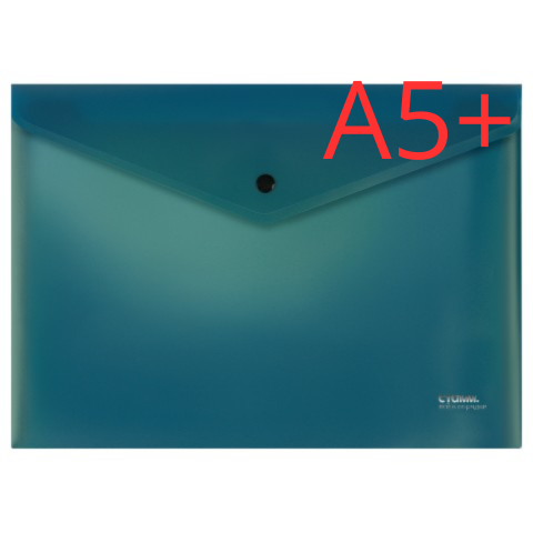 Папка-конверт на кнопке СТАММ "Акцент" А5+, 180мкм, пластик, непрозрачная, эвкалиптовая ММ-31944 Россия