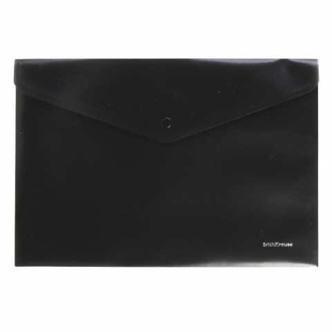 Папка-конверт на кнопке формата А4 из высококачественного непрозрачного пластика с текстурой поверхности "апельсиновая корка", на которой не видно отпечатков пальцев и мелких царапин. Предназначена для хранения и транспортировки небольшого количества документов. Цвет папки — черный.Надежная застежка-кнопка обеспечивает быстрый доступ к документам. Папка вмещает до 120 бумажных листов. Размер — 232х333 мм, толщина — 0.14 мм.