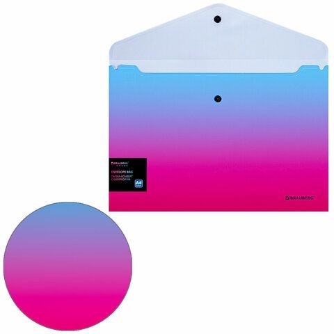 Многофункциональная папка-конверт BRAUBERG "Grade" – это неотъемлемый канцелярский атрибут современного человека. Папка идеально подойдет для хранения и транспортировки важных документов формата А4.Папка-конверт подойдет для студента, школьника, офисного работника.Папка сделана из плотного пластика (180 мкм) с УФ-печатью. Закрывается на защелку-кнопку, что увеличивает сохранность документов. Вместительность до 100 листов, гладкая фактура с градиентом.Папка надежно защитит документы и сбережет их от повреждений, пыли и влаги.Отличное качество и привлекательная стоимость – те исключительные качества, которые гарантирует бренд BRAUBERG!