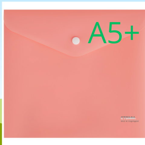 Папка-конверт на кнопке СТАММ «Акцент» формата А5+ надежно защищает документы от влаги и пыли. Горизонтальное изделие вмещает до 100 листов. Цвет папки – коралловый. Она изготовлена из качественного полипропилена плотностью 180 мкм с матовой текстурой. Размер папки составляет 240*215 мм. Изделие плотно закрывается на кнопку.