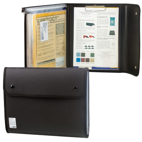 Папка для конференций BRAUBERG предназначена для хранения и транспортировки важных документов и ценных бумаг. Незаменима в работе, связанной с публичными выступлениями.Папка формата А4 изготовлена из качественного пластика толщиной 0,9 мм с фактурой "бисер" и содержит 6 отделений и зажим, которые позволяют структурировать документы, а также с комфортом делать записи на весу. Для удобства поиска нужного документа папка снабжена индексными ярлыками. Кнопки, расположенные по краям, легко закрывают папку, не позволяя содержимому выпасть и надежно защищая от влаги, пыли и прочих механических повреждений. Папка представлена в солидном черном цвете.