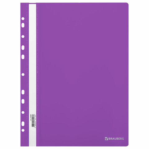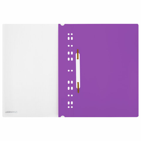 Классический мягкий пластиковый скоросшиватель BRAUBERG предназначен для систематизации, хранения и транспортировки документов. Защищает бумаги от загрязнений, пыли, влаги и прочих механических повреждений.Скоросшиватель изготовлен из качественного полипропилена. Фиксирует до 100 листов формата А4. Толщина пластика верхнего листа составляет 140 мкм, нижнего – 180 мкм. Предельно простой механизм подшивки: металлические усики и пластиковая планка для надежной фиксации документов.Прозрачный верхний лист позволяет идентифицировать подшитый документ, не открывая скоросшиватель. Сменный пластиковый корешок помогает структурировать информацию. Благодаря фактуре "песок" и яркому фиолетовому цвету обложки папка никогда не затеряется на полке.