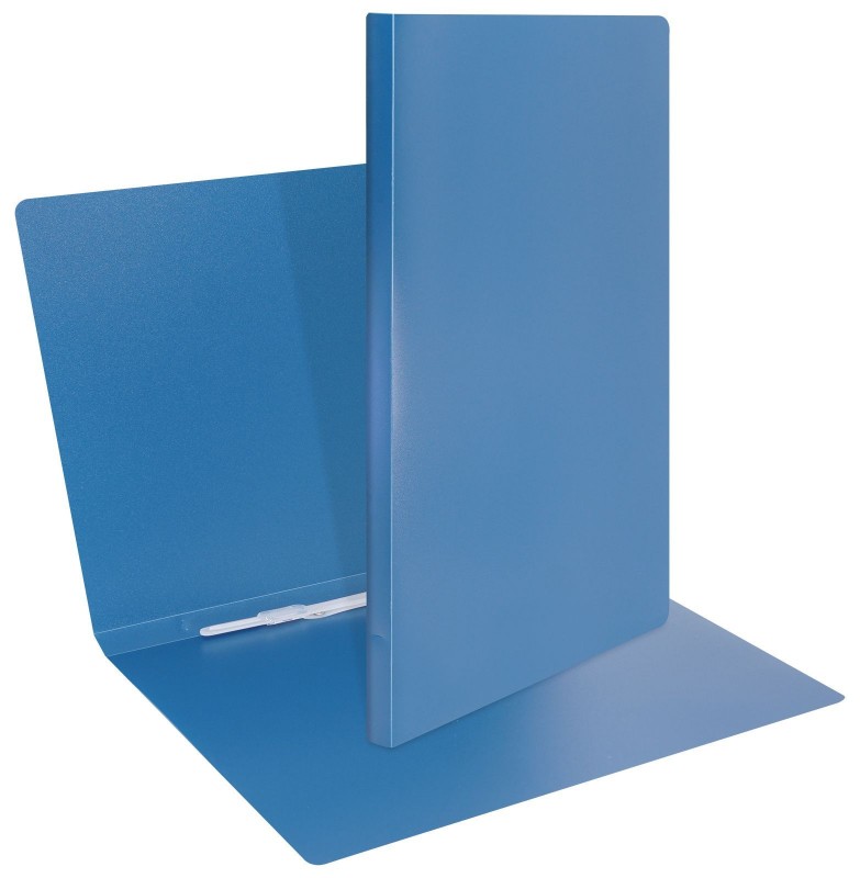 Папки-скоросшиватели формата А4+ изготовлены из листового полипропилена толщиной 0,5 мм (500 мкм), который не мнется и не трескается. Снабжены скоросшивателем с пружинным пластиковым механизмом. Имеют корешок шириной 15 мм. Вмещают до 150 листов стандартной плотности. Цвет: синий. Срок годности — неограничен.