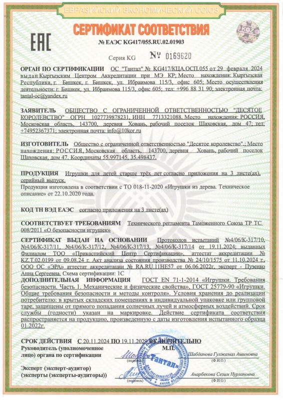 Детали | Декларация о соответствии ЕАЭС KG417КЦА.ОСП.025.RU.02.01770 до 23.06.2026 г. |