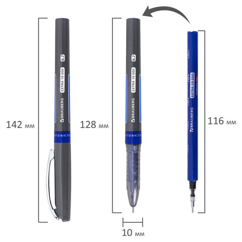 Шариковая ручка BRAUBERG "EXTRA 10000" прослужит вам долго – длина письма рассчитана на 10 000 метров!Шариковая ручка BRAUBERG "EXTRA 10000" изготовлена из высококачественных материалов, снабжена сменным стержнем длиной 116 мм, заправленным специальными чернилами ультрапониженной вязкости синего цвета. Корпус ручки выполнен в сером цвете. Зона захвата ручки выполнена из прозрачного пластика и имеет рифление, что обеспечивает надежное расположение ручки при письме. Металлический клип надёжно фиксирует ручку на блокноте или папке, позволяя всегда держать её при себе.Игольчатый узел 0,7 мм создает аккуратную и тонкую линию письма 0,35 мм. За счет технологии FEEL INK ваши записи никогда не будут смазаны, так как чернила быстро сохнут, предотвращая размазывание. Увеличенная длина письма 10 000 метров обеспечивает долгий срок службы.Ручка BRAUBERG с масляными чернилами – идеальный выбор для комфортного и гладкого письма! Экологичные материалы, эргономичный дизайн и непревзойденное качество письма – вот что делает ее выбором номер один. Не откладывайте на потом, купите BRAUBERG прямо сейчас и наслаждайтесь качественным письмом!