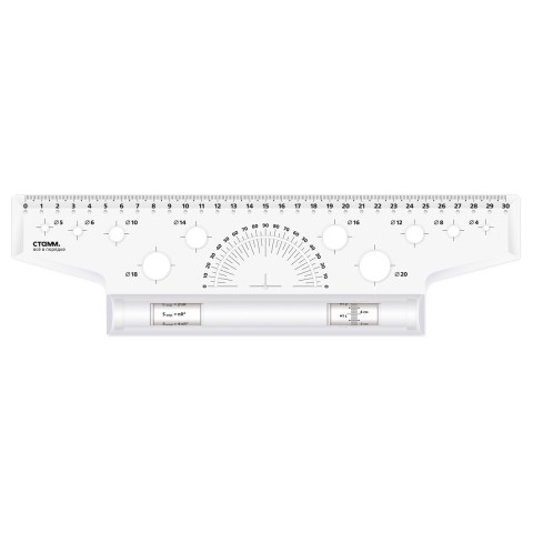 Линейка с роликом (рейсшина) STAFF идеально подойдет для нанесения ровных параллельных линий. Легкая в использовании и удобная в транспортировке как для студентов, так и для офисных работников.Изготовлена из высокопрочного пластика. Оснащена металлическим антискользящим роликом, на котором изображена измерительная шкала и геометрические формулы. Длина шкалы составляет 30 см. На линейку нанесена измерительная шкала и шкала транспортира. Также снабжена трафаретом окружностей различных диаметров. На ролике нанесена дополнительная шкала и геометрические формулы.