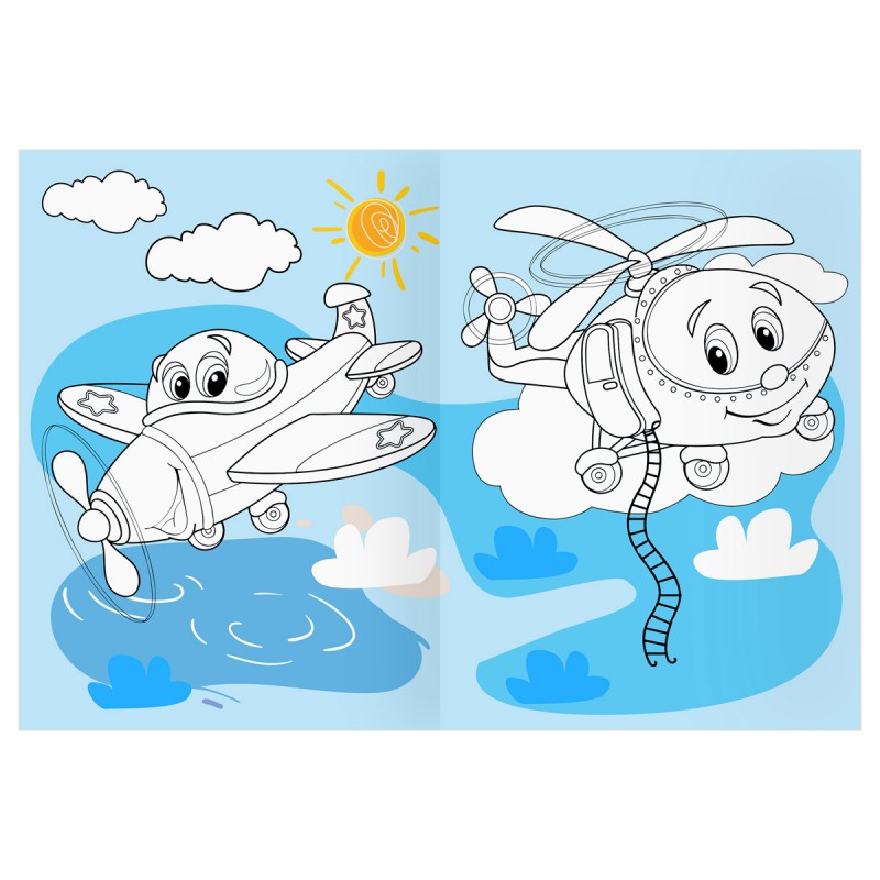 Раскраска формата А4 и размера 210*290 мм состоит из 16 страниц. Внутренний блок – офсетная бумага плотностью 100 г/кв. м.