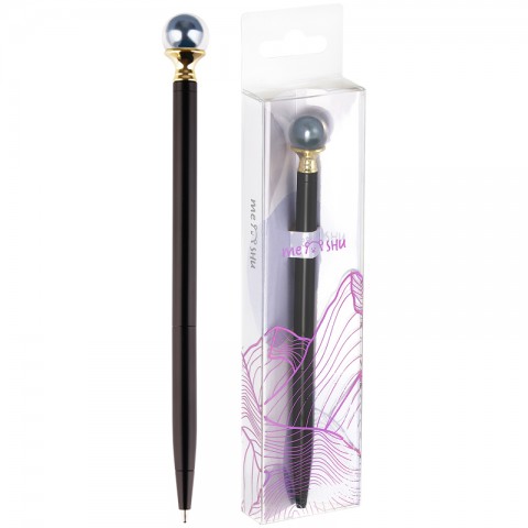 Шариковая ручка MESHU – это привлекательный аксессуар для ярких, смелых и успешных. Диаметр пишущего узла: 1 мм. Ручка подойдёт для мягкого и быстрого письма. Чёрный корпус ручки из металла с матовым эффектом украшен серой перламутровой жемчужиной на золотом пьедестале.