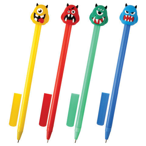 Шариковая ручка масляная ЮНЛАНДИЯ "Монстрик" с милой игрушкой на корпусе.Шариковая ручка серии FUNNY YUMMY с ярким корпусом и оригинальным дизайном топперов в виде монстрика. Благодаря привлекательному дизайну ее не захочется выпускать из рук, а чернила на масляной основе обеспечат мягкое плавное письмо. Диаметр игольчатого пишущего узла, равный 0,7 мм, создает линию письма, равную 0,35 мм. Длина сменного стержня составляет 129 мм. Цвет чернил - синий.