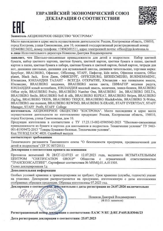 Детали | Декларация о соответствии ЕАЭС N RU Д-RU.РА01.В.17475/22 |
