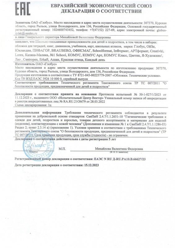 Детали | Декларация о соответствии ЕАЭС N RU Д-RU.РА01.В.50506/21 от 30.04.2021 по 39.04.2026 г. |