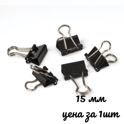 Изготовлены из стали с черным покрытием. Позволяют скреплять до 45 листов. Не деформируют бумагу. Ширина зажима - 15 мм. Поставляются по 12 штук в картонной коробке.