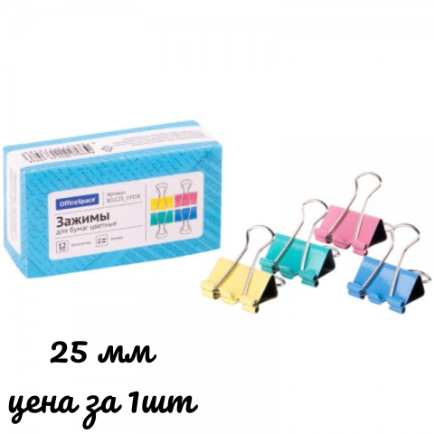 СтранаКИТАЙБрендOfficeSpaceВид товаразажимы для бумагВид зажимаклассическийШирина25 ммКоличество в упаковке12ЦветассортиКоличество скрепляемых листов100Материал корпусаметалл