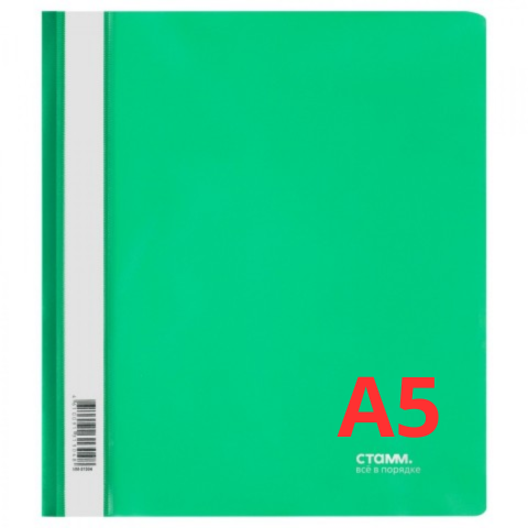 Папка-скоросшиватель «СТАММ» формата А5 предназначена для транспортировки, хранения и систематизации документов. Изделие изготовлено из качественного полипропилена толщиной 180 мкм. Папка размером 223*202 мм выполнена в зеленом цвете и имеет прозрачный верхний лист. Вместимость – до 50 листов. Папка защищает документы от пыли, влаги и прочих повреждений.