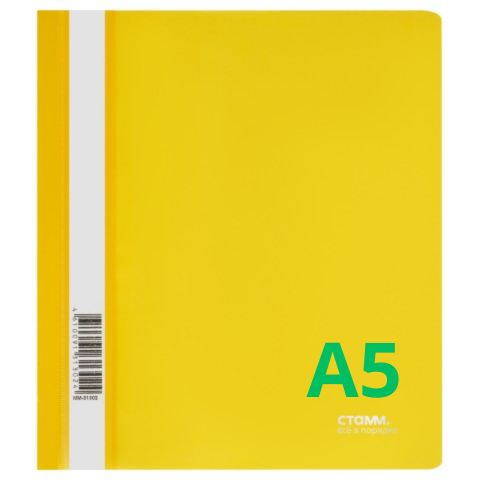 Папка-скоросшиватель «СТАММ» формата А5 предназначена для транспортировки, хранения и систематизации документов. Изделие изготовлено из качественного полипропилена толщиной 180 мкм. Папка размером 223*202 мм выполнена в жёлтом цвете и имеет прозрачный верхний лист. Вместимость – до 50 листов. Папка защищает документы от пыли, влаги и прочих повреждений.