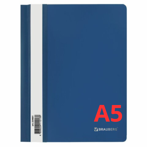 Классический мягкий пластиковый скоросшиватель BRAUBERG предназначен для систематизации, хранения и транспортировки документов. Защищает бумаги от загрязнений, пыли, влаги и прочих механических повреждений.Фиксирует до 100 листов формата А5. Толщина пластика верхнего листа составляет 130 мкм, а нижнего - 180 мкм. Предельно простой механизм подшивки: металлические усики и пластиковая планка для надежной фиксации документов. Скоросшиватель изготовлен из качественного полипропилена. Прозрачный верхний лист позволяет определить содержимое, не открывая скоросшиватель, который к тому же снабжен сменным пластиковым корешком, что дает возможность структурировать информацию. Благодаря фактуре "песок" и насыщенному синему цвету обложки папка никогда не затеряется на полке.