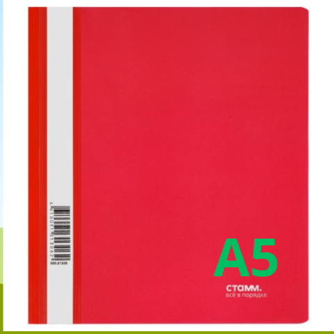 Папка-скоросшиватель «СТАММ» формата А5 предназначена для транспортировки, хранения и систематизации документов. Изделие изготовлено из качественного полипропилена толщиной 180 мкм. Папка размером 223*202 мм выполнена в красном цвете и имеет прозрачный верхний лист. Вместимость – до 50 листов. Папка защищает документы от пыли, влаги и прочих повреждений.