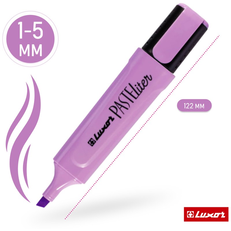 Пастельный текстовыделитель Luxor "Pasteliter" обеспечивает мягкое письмо. Пастельный цвет подходит для тех, кто любит приглушенные цвета линий. Чернила на водной основе быстро сохнут и не оставляют разводов. Скошенный наконечник позволяет варьировать ширину линии письма от 1 до 5 мм. Цвет чернил - лаванда.