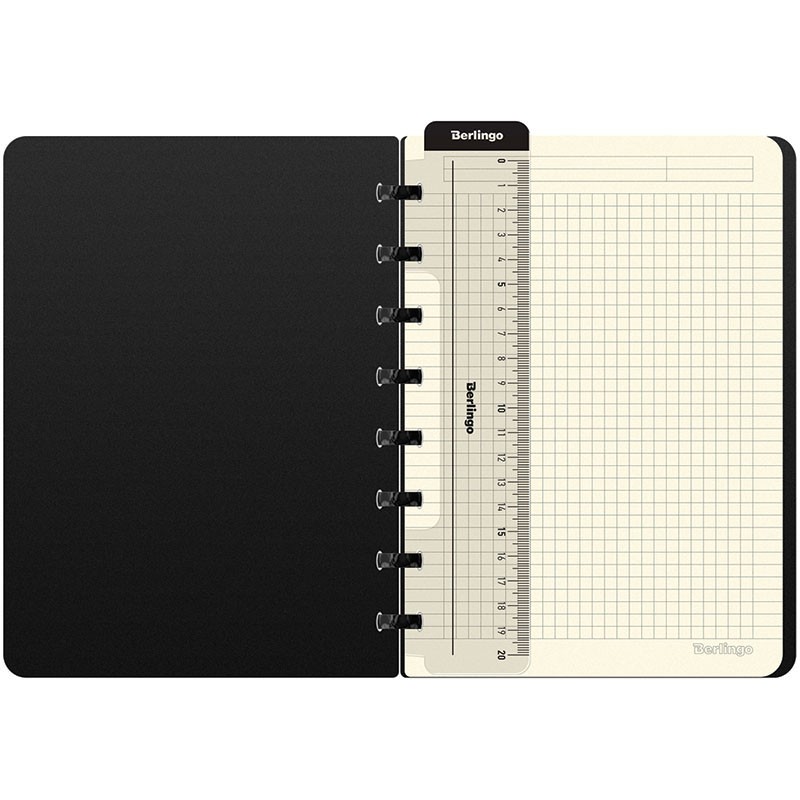Бизнес-тетрадь Berlingo "Instinct" - это практичное, стильное и современное изделие для планирования и записей. Такая бизнес-тетрадь является незаменимым инструментом для деловых людей. Увеличенная толщина обложки (1500мкм). Формат А5+. Насыщенный пастельный фиолетовый цвет внешней стороны в сочетании с фактурой "горизонтальные линии". Черный цвет внутренней поверхности. Материал обложки - трехслойный пластик (полифом), надежно защищает внутренний блок от влаги, замятия и загрязнения, обложка устойчива к загрязнениям. Вид скрепления – стильные имиджевые черные кольца, с возможностью раскрывать тетрадь на 360⁰. Возможна замена бумажного блока и быстрая и удобная выемка/вставка листов без повреждений. Бизнес-тетрадь содержит съемную брендированную линейку, которую можно использовать как закладку или разделитель и с легкостью можно перемещать в удобное место. Внутренний блок – высококачественная тонированная бумага, плотностью 80г/м2, 80 листов в клетку, рамка для заголовка, темы или даты, поля с обеих сторон блока на каждом листе, линовка на вылет. Размер бизнес-тетради 220*160мм, диаметр колец 22мм.