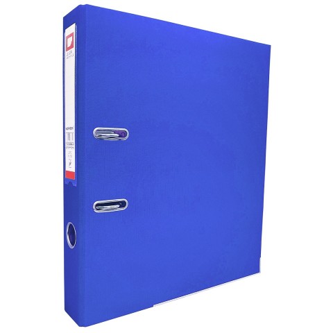 Высококачественная папка-регистратор А4 формата, 75 мм, синяя, изготовлена из прочного картона, покрыта износостойким ПВХ.