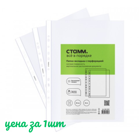 Папка-вкладыш с перфорацией «СТАММ» отлично подойдет хранения и систематизации документов. Папка размером 425*320 мм изготовлена из полипропилена толщиной 40 мкм. Папка вмещает до 50 листов. Имеет матовую текстуру, защищает листы от внешних воздействий. Перфорация на боковой части позволяет разместить изделие в папке с любым кольцевым механизмом или скоросшивателе. Упакованы в пакет по 50 штук.
