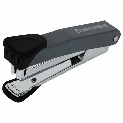 Настольный степлер BRAUBERG "Standard+" с классическим дизайном. Полнозагрузочный - вмещает до 150 скоб № 24/6.Обеспечивает качественное скрепление документов до 30 листов. Размер скоб №24/6, 26/6. Глубина закладки бумаги - 85 мм. Виды сшивания: открытый, закрытый и прямой. Эргономичная форма корпуса обеспечивает продолжительное время использования без перерыва. Корпус изготовлен из пластика.