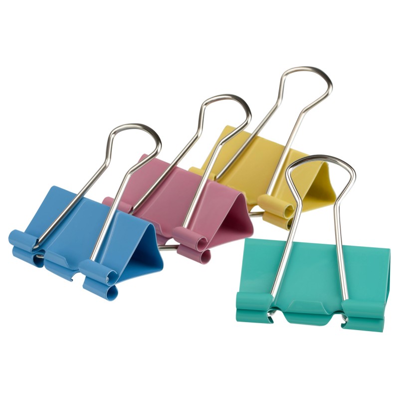 Для скрепления большого количества листов. Не деформируют бумагу. Цвет ассорти. 12 штук в коробочке.